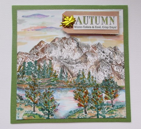 created a mountain and lake scene using stamps